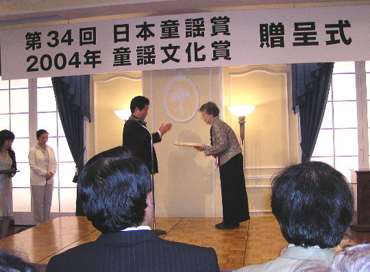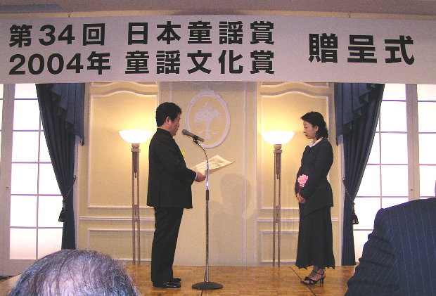 (社団法人)日本童謡協会より井上さんに賞状・盾・副賞が授与されました。